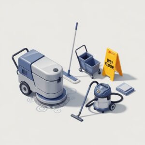 Industrial vacuum cleaners, pressure washers, and floor sweepers designed for harsh environments.